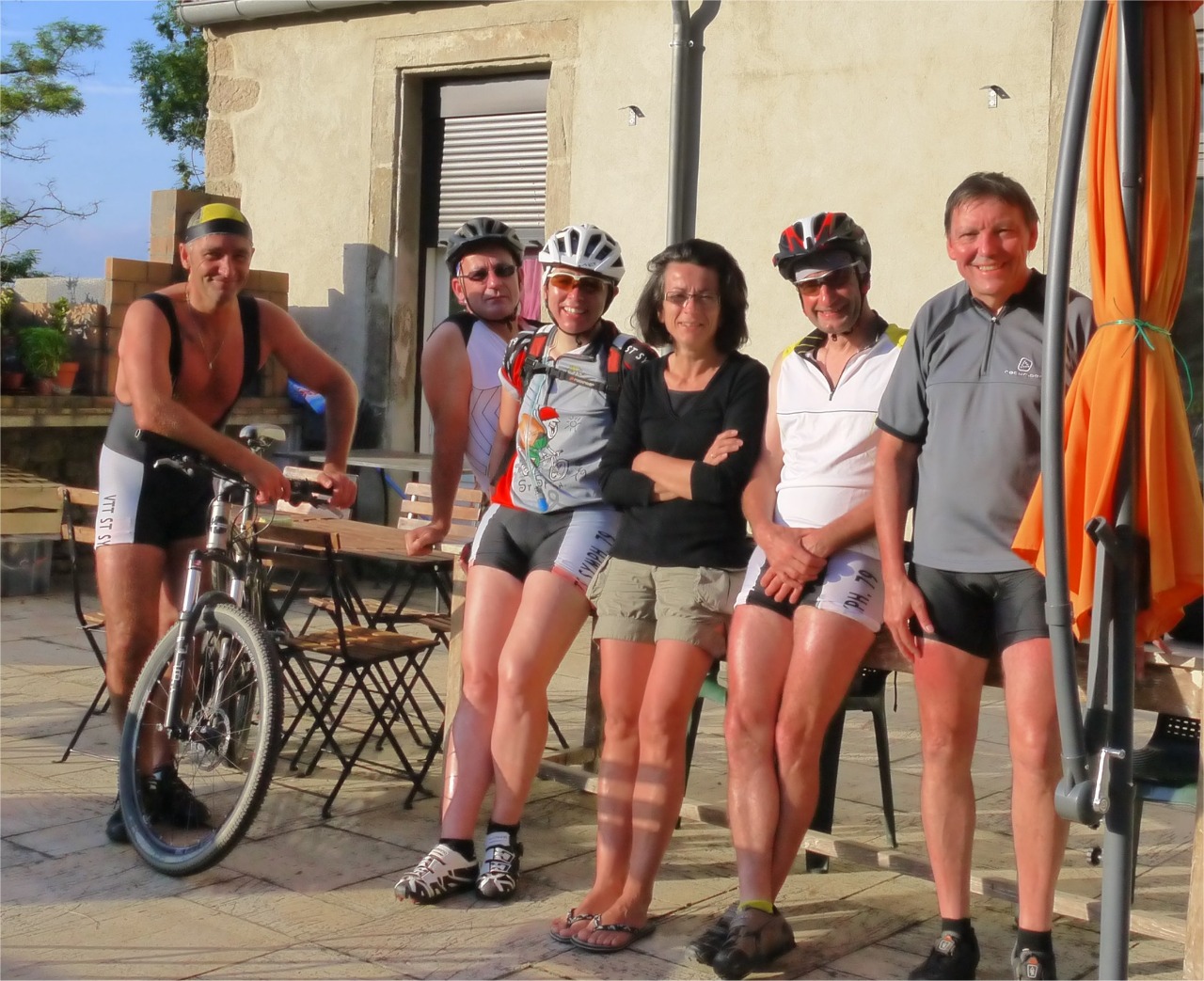 Bilan : 4h06 pédalage alt max 841m - 1ère crevaison (Christian) sur la place du village au Caylar.